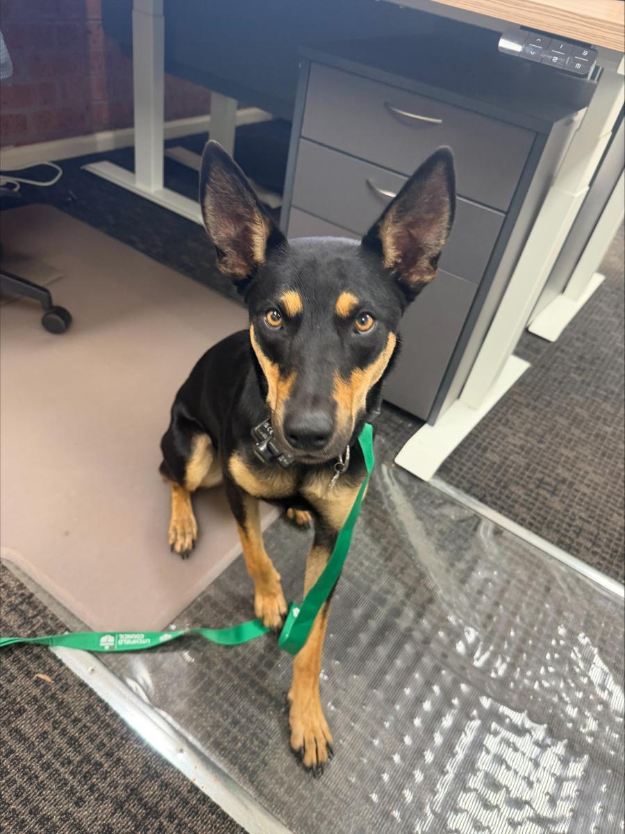 Entire female, adult, Kelpie, black and tan in colour, microchipped, wearing a collar, unregistered with Council
