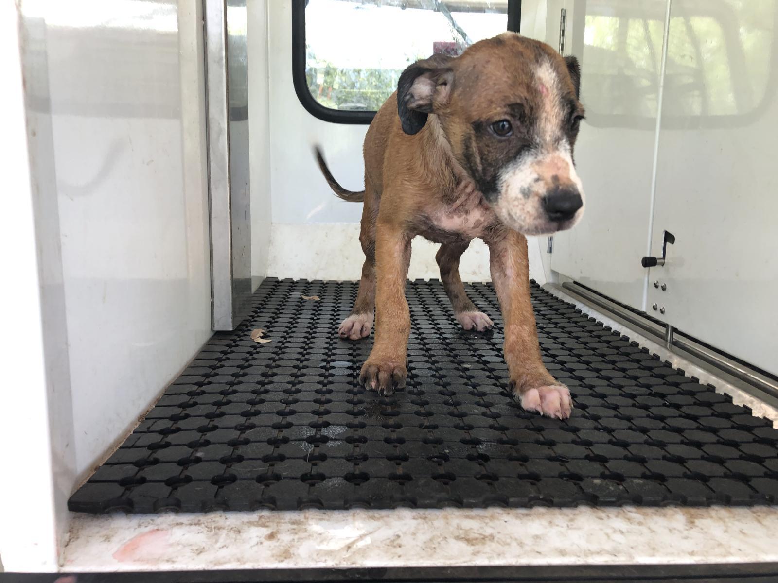 Entire Female Pup, Brindle, no collar or microchip, not registered with Council