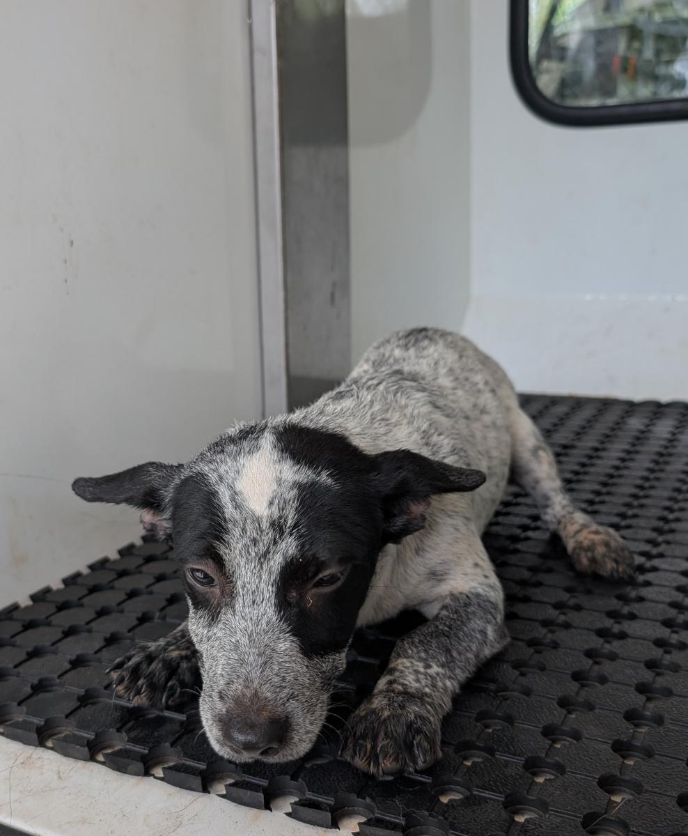Entire Female, Australian Cattle Dog, no collar, is microchipped not registered with Council.