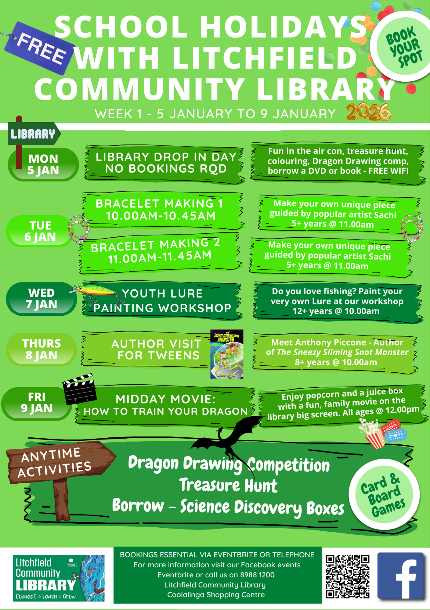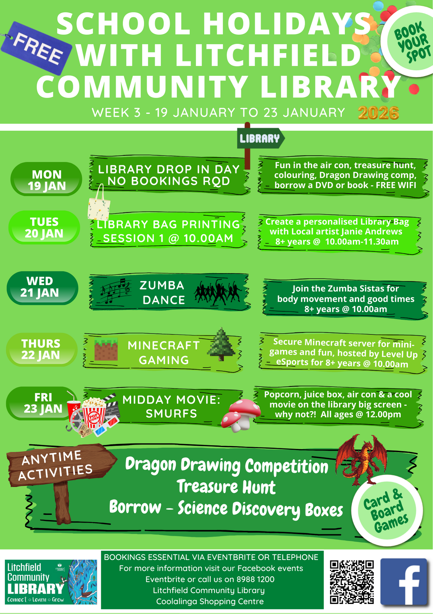 Available throughout the school holidays at Litchfield Community Library: