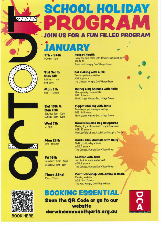 This January school holidays, families across Litchfield are invited to enjoy a vibrant mix of free activities delivered by Litchfield Council, Litchfield Community Library (supported by a NTG Office of the Youth Affairs grant) and Darwin Community Arts.